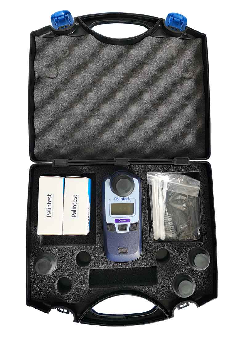 Palintest臭氧测量计随硬质手提箱提供,套件内包含检测所需的DPD试剂和所有配件。