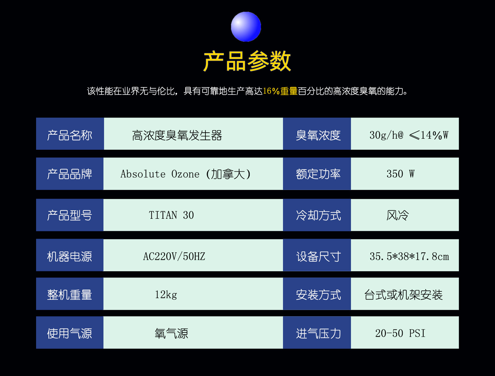 加拿大absoluteozone Prime P30高浓度臭氧发生器(实验用)