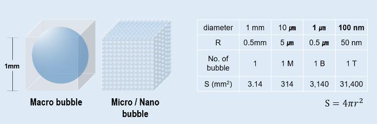 纳米气泡具有更高的表面积与体积比,这使得更大体积的气体与水接触。这与由于其体积小和浮力高而在水中保持漂浮的能力相结合,提高了气体和液体之间的气体转移效率。